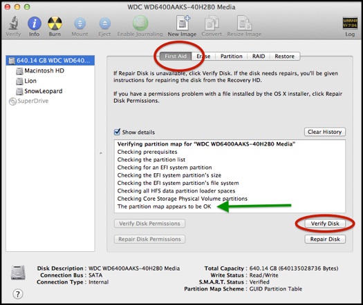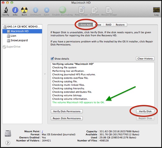 You should see the "appears to be OK" message. If not, click the Repair Disk button. That also should just take a moment.