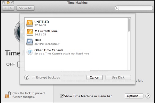 B1. I can’t select my disk for use with Time Machine