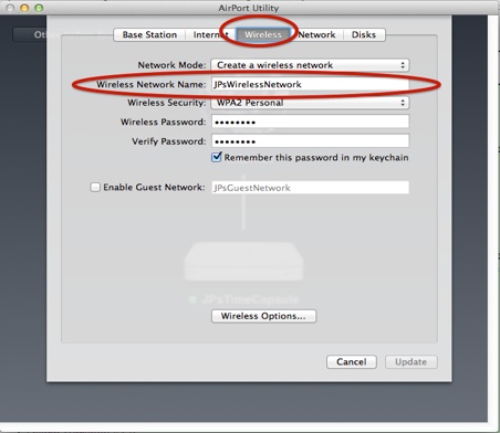 Note: if you're using Airport Utility 5.6.x, click your Time Capsule in the sidebar and click Manual Setup at the bottom. You'll find similar windows.