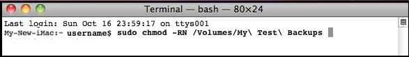 Then drag your backups to the Terminal window (the Backups.backupdb folder if they're on an internal or external HD, or the sparsebundle if they were made over a network).  That will create the "path" to the backups (and insert a backslash "\" in front of spaces or other punctuation).