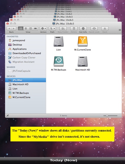 Partition MyMedia, which was backed-up previously, but has since been excluded, appears normally on the Today (Now) page.